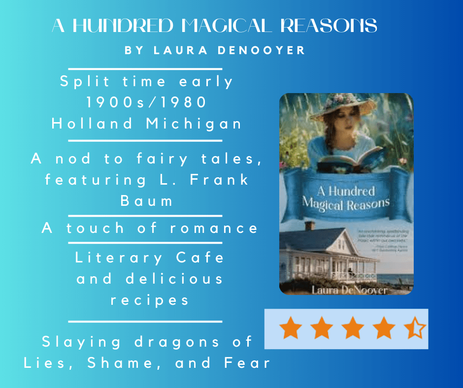 Pros: I was excited to read a split time novel juxtaposing the early 1900s with 1980. But the real treat, for me, was the Dutch heritage. The novel is set in and around Holland, Michigan and Dutch phrases, names, and mannerisms abound. The gorgeous prose reminded me of Amanda Dykes’ novels and the witty banter between characters had me laughing out loud. Set in a frame of fairy tales, the tragedies (and romances) of Charlotte Rose and Carrie felt like real-life. The way they wound together at the end created a beautiful and satisfying happily-ever-after.